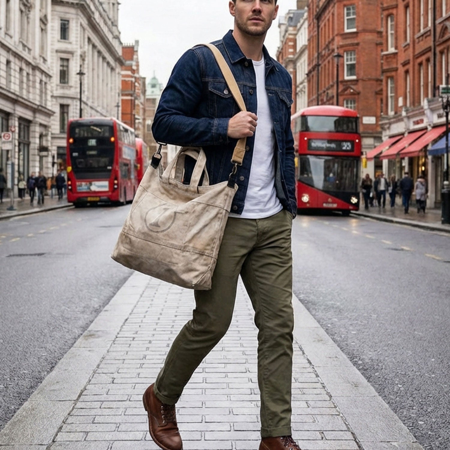 50年代のUSメールバッグが持つ“生地の歴史”を、いまの生活で使いやすい形に。 ほどよい横幅と整理しやすい内ポケットで、日常の荷物を品よくまとめます。